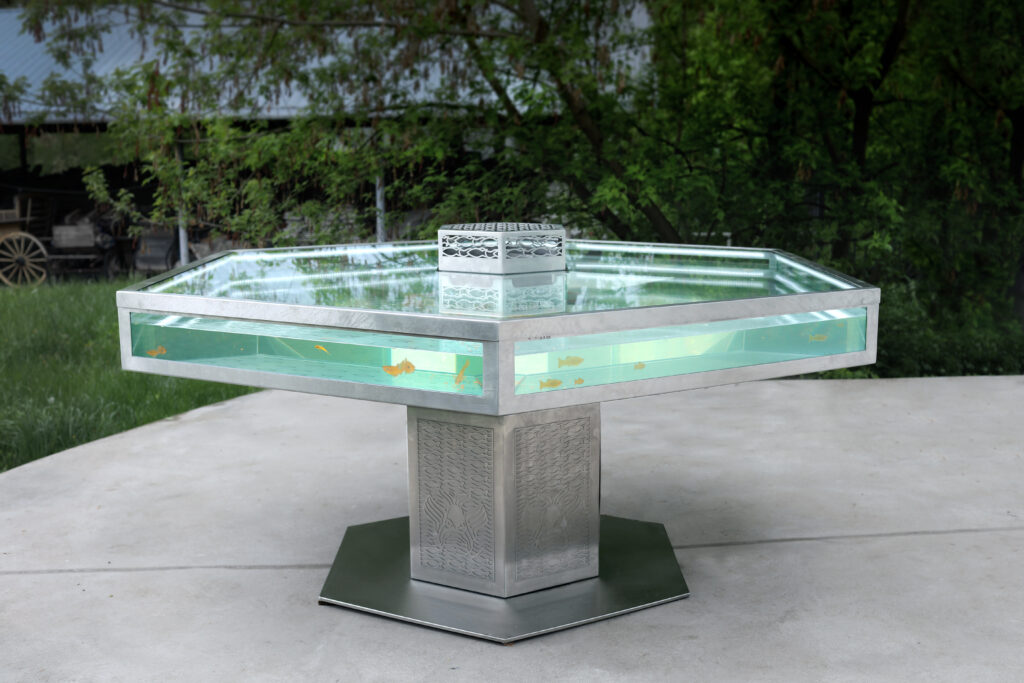 Our talented artisans pour their expertise and dedication into every detail of the table's construction, ensuring that each piece is a true work of art. The selection of materials, the precision in crafting, and the integration of an aquarium are all executed with meticulous care, showcasing our unwavering commitment to excellence.